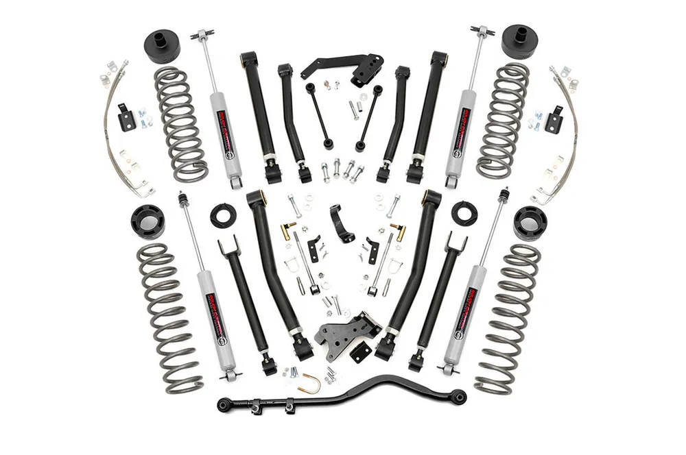 - Rear Components Lifted coil springs Coil spring spacers Upper adjustable control arms Lower adjustable control arms Coil correction plates Track bar drop bracket Extended sway-bar links Stainless steel braided brake lines Hardware