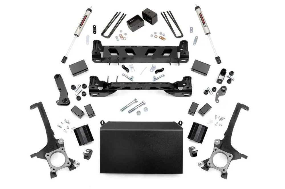 You’ll never look at a Tundra the same way after installing Rough Country’s 6-inch Toyota Tundra kit. This all-inclusive kit is a total transformation for your truck, with durable lifted knuckles, protective skid plate, and all the brackets and hardware needed to set your truck to a factory-like geometry while providing additional ground clearance.