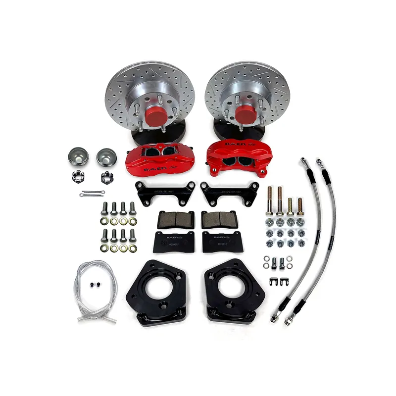 This system features the 4-piston, S4TL caliper mounted to a 11″, 1-Pieceslot, drill, zinc plated integral hub rotor. The S4TL caliper has D.O.T compliant dust and weather seals with a top load design for quick and simple pad changes. Rotors come with bearing races installed and premium bearings packed with Redline synthetic grease and new dust caps. All mounting brackets, stainless braided hoses and hardware are also included.The 11″ SS4 is designed just like Baer’s larger systems, but in a smaller package for 15″ wheels. *** THIS IS A CUSTOM-BUILT, MADE TO ORDER ITEM THAT TYPICALLY SHIPS WITHIN 5 BUSINESS DAYS. FOR ADDITIONAL INFORMATION, PLEASE CONTACT BAER DIRECTLY AT 602-233-1411 OR AT [email protected] ***