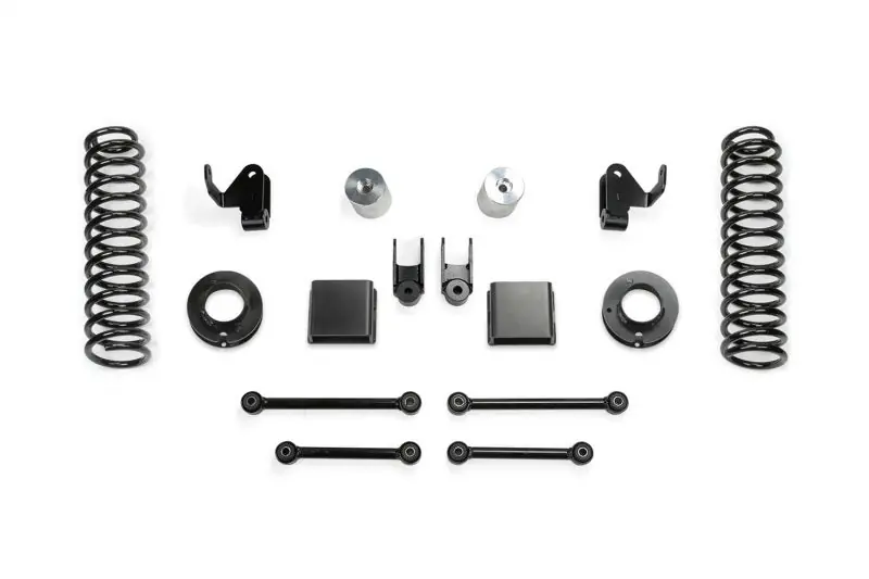 This Sport lift kit is Fabtech?s most popular Jeep system providing increased ride height and suspension performance at a great price. Installation is easy and can be installed in a couple hours. The Sport lift kit features American made front coil springs that are a dual rate design allowing extended suspension travel for offroad use while providing a smooth highway ride. The first stage of the spring provides a soft ride with the ability to extend for additional travel. The second stage is designed to handle the payload of the vehicle and address large impact absorption at higher speeds. The rear of the vehicle receives coil spring spacers retaining the factory ride and load carrying capacity. The spacer height is 1-3/4″ to help level the stance of the vehicle. Four bump stops extensions utilize the factory bump stops for compliant cushioning at full compression. The extensions retain the stock down travel to eliminate over cycling of the suspension and driveline. The extended length front and rear sway bar links with urethane bushings reposition the bars to work within the factory operating planes. By extending the length of the links, it prevents the sway bar from going over center and creating bind at full extension travel. The factory shocks are retained with steel extension brackets keeping the shocks in the proper travel range with the new ride height. This Gladiator lift kit is an excellent choice for the Jeep enthusiast that wants to run larger tires with enhanced offroad capability and a good highway ride. WHAT?S IN THE SYSTEM: Front Dual Rate Coil Springs, Rear Coil Spacers, Front & Rear Sway Bar Links, Front & Rear Bump Stop Brackets, Free 5 Year 60,000 Mile Powertrain Warranty.