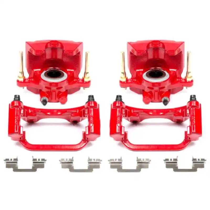 PowerStop Powder Coated Brake Calipers are made specifically with the enthusiast in mind. These calipers (sold as pairs) bolt directly in place of the original stock calipers and look great behind any set ofwheels. PowerStop Brake Calipers are engineered to provide the best performance and reliability, and are coated with a durable electrostatic high-temperature red powder coat. The easy-to-clean coating provides resistance to rust and corrosion thus extending the life of your calipers. PowerStop calipers are 100% pressure tested and inspected to verify piston operation to guarantee a reliable, high quality brake performance. Expertly assembled with everything needed for a brake upgrade using new seals, caliper slide pins/bolts, dust boots, bleeder screws, and stainless-steel pad attachment hardware. High temperature EPDM rubber dust boots and premium lubricants ensure a smooth caliper operation and durability in the harshest conditions. PowerStop Powder Coated Brake Calipers are finished in a high-temp powder coating and designed to enhance both the performance and custom look of your vehicle!