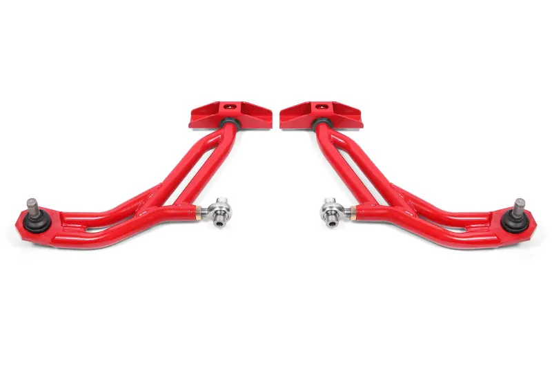 BMR 10-14 Ford Mustang Adj. Lower A-Arms Delrin/Rod End w/ 19mm STD. Ball Joint – Red Viral