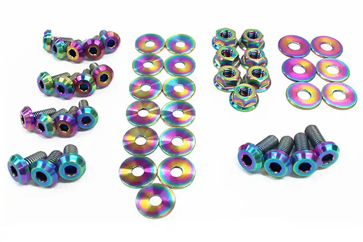 - All bolts, nuts, and washers are manufactured from extremely durable, lightweight, and anti-corrosive GR5 titanium metal
