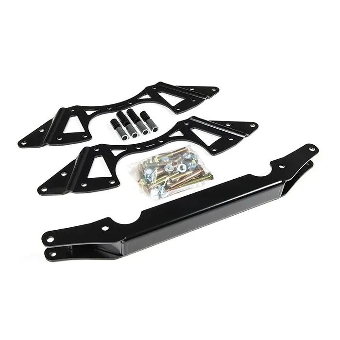 RT Pro is proud to say this kit WILL NOT cause any CV binding issues for your RZR. Not every mfg can say that. We know ours works because we’ve tested the kit and can honestly say the rear will not droop any lower than the factory setup. We achieve this by relocating the UPPER shock mounts and not the lowers. This method improves the shock angles which require a lower spring rate to hold the vehicle at ride height. When retaining the stock springs however, the ride height is raised. This kit will allow you to back the “clickers” on your shocks down and still have the desired height needed for that additional ground clearance. So you get two things with this kit. A taller ride height PLUS an improved ride! Actual height gains will vary but expect approximately 1.5″ rear lift and 2″ front. We’ve found our best performance with these machines by setting the fronts 0.5-1″ taller. OEM springs are known to sag. If you end up with less lift than expected and still have stock springs this may be the problem. The best ride and handling is usually found with the kit set at only about 1″ of lift so this might still be alright for you. If you don’t get all the height you want, consider one of our replacement spring kits for your model. The combination of a lift kit with our replacement springs is the ultimate best bang for your buck when it comes to getting the ride height, handling and smooth ride you want without spending the big money on aftermarket shocks. This kit is all bolt-on and the installation can be completed in less than 1.5 hours. There are four holes to be drilled in the rear of the frame for the ultimate in strength but this job is made simple by the very thorough instructions this kit comes with. This kit comes complete with all necessary components, hardware and instructions for complete installation. Kits are powdercoated black.