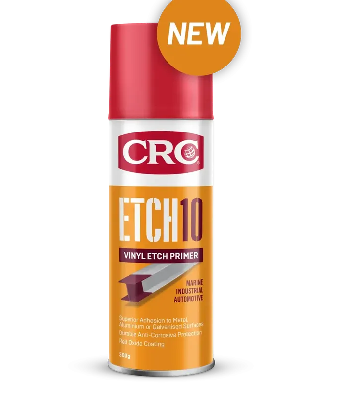 CRC ETCH-10 is a high-performance Red Oxide Vinyl Etch Primer designed for superior adhesion & corrosion resistance on various metal surfaces. (Ferrous & Non-Ferrous). CRC ETCH-10 is ideal for key-coating metals, bare aluminium, stainless steel, brass, copper & galvanised metal surfaces. CRC ETCH-10 can be overcoated with most standard decorative paint systems for metals.