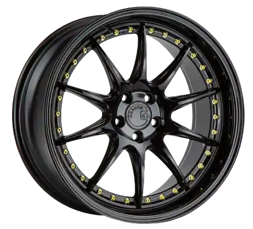 Deal Aodhan DS07 5×114.3 19×9.5+15 Gloss Black W /Gold Rivets