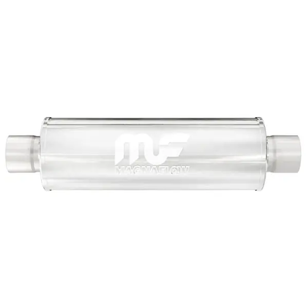The MagnaFlow 7in. Round Straight-Through Performance Exhaust Muffler 12773 brings our world-famous exhaust sound and dyno-proven performance to your ride in a weight-optimized 7x7x30in. package with a premium satin finish. The straight-through free-flowing design of this round-bodied muffler’s reversible, universal 4/4in. diameter inlet/outlet layout enables versatile installation options to match the spacing requirements of your vehicle. Due to the cutting and welding involved, professional installation is highly recommended. Internally, 12773 utilizes a perforated stainless steel core wrapped in stainless steel mesh and acoustic fiber fill to achieve a powerful, resonant tone. This muffler is made of durable, corrosion resistant stainless steel and produced using cutting-edge CNC precision robotic manufacturing techniques, all backed by MagnaFlow’s limited lifetime construction warranty.