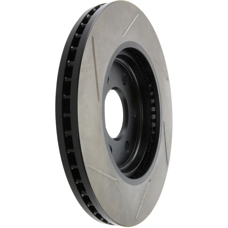 StopTech Slotted Sport Rotors are 1-piece direct replacement brake discs for factory brake systems and stock calipers that look great behind your wheels – and offer significantly improved braking performance. The unique slotting aids with heat and brake dust dispersal; prevents glazing of the pads; adds bite and improves wet and dry braking performance. Built to last; the black e-coating provides protection from corrosion and the high carbon metallurgy (in most applications) offers quieter operation; better crack resistance and increased performance.