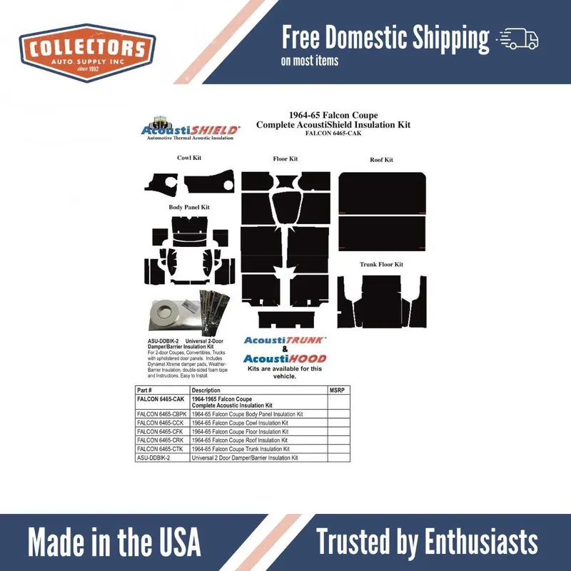 Direct From Manufacturer Firewall Insulation for 1964-1965 Ford Falcon