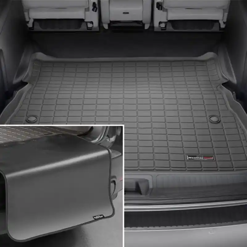 Do you often find yourself putting your back seats down to make room for pets, gear, groceries and more? WeatherTech’s SeatBack Cargo Liner HP safeguards the base and up the back seats of your vehicle’s cargo area, even when the seats are down! This cargo liner is made from the same heavy-duty, rubber-like material as our bestselling FloorLiner HP, offering a durable one-piece mat that defends against spills and messes. Its patent pending expandable accordion hinge allows you to put your back seats in the full-down position and maintain uninterrupted coverage – no more spills or pet hair adhering to the back of your seats or cargo area! There’s even a specially designed water retention ribbing system that helps trap water. SeatBack Cargo Liner HP defends against the dirt, grass, mud, and debris that come from workout gear, dogs, sports equipment, groceries, or anything else you put in your cargo area. Non-slip nibs on the underside – and hook fasteners – keep this trunk liner in place – both on the floor and up the backs of your seats. Plus, because it’s a one-piece mat, installation and removal for cleaning is easy. Have young kids? No problem! SeatBack Cargo Liner HP features a trimmable outline to accommodate attachments for child car seats – known as ISOFIX – while the cargo mat stays in place. Made from a thermoplastic elastomer, this cargo mat offers the flexibility and durability needed for maximum protection. It won’t break down in extreme weather, and is 100% recyclable with no latex, PVCs, cadmium or lead. Enjoy high-performance, full coverage and protection for the bottom and seat backs of your cargo area with the American-made SeatBack Cargo Liner HP.