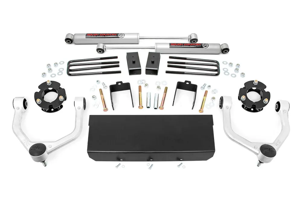 Featuring a 100 percent bolt-on installation process that requires zero cutting or drilling, this kit can be installed using common tools in a home garage, and allows the truck to be returned to stock at any time if so desired. Best of all this kit features Rough Country’s Lifetime Replacement Warranty.