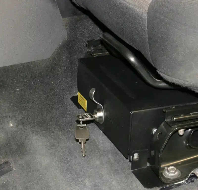 This high security 16 gauge steel security drawer mounts under the drivers side seat in a Jeep TJ and LJ (No flip seat). The formfitting design of the Tuffy lockbox has over 336 cubic inches of lockable storage. It’s secured contents are easily accessed by maneuvering the drawer open and closed on the smooth ball bearing slides using the convenient pull lever. Featuring Tuffy’s Pry-Guard Locking System with a 10 tumbler double bitted security lock with built in weather seals. The design incorporates a heavy duty fully extending slide system, weather seal and welded construction. A formed rib in the enclosure additionally strengthens the locking system. Mounts inconspicuously under the drivers side seat in a Jeep TJ (No Flip Seat) and LJ (No Flip Seat) out of apparent sight of would be thieves.