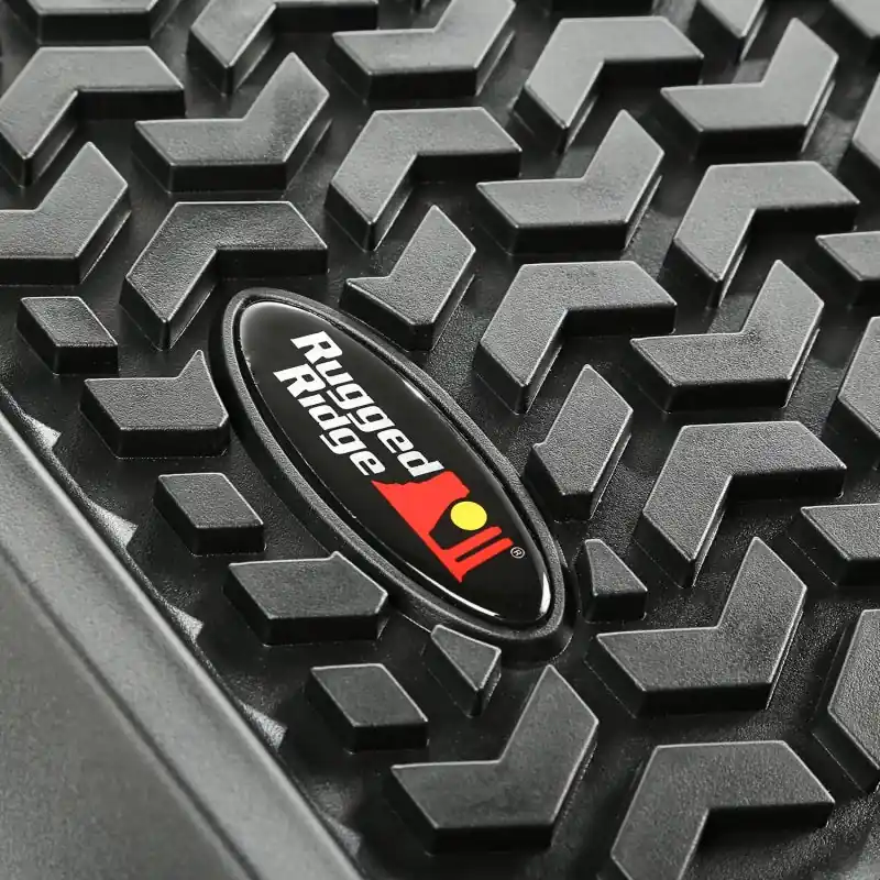 Rugged Ridge Floor liners provide complete protection for the cabin floor of your vehicle while keeping it looking factory fresh. Each liner is perfectly contoured to your vehicles floor for precise secure fitment (floor hook attachment where applicable). The raised lip captures all spills, water and debris keeping your interior pristine. The Chevron-shape patented Deep Tread Technology channels liquid away from your shoes keeping them dry. Made of a durable OE-quality Thermoplastic material that can withstand the rigor of daily abuse. Backed by our Limited Lifetime Warranty. Patent 8,163,369, D627,285, 2,699,641