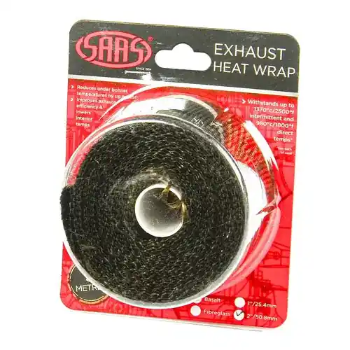 Our SAAS exhaust wrap is a must have for your vehicle’s exhaust system. Designed to retain heat within the exhaust pipes, exhaust wrap helps improve the efficiency of the exhaust by decreasing density, and increasing the flow of exhaust gases. Under-bonnet temperatures can be reduced when using exhaust wrap. Your vehicle’s electronics, air-intake systems, dash components and interior also benefit from exhaust wrap, as it reduces their heat absorption