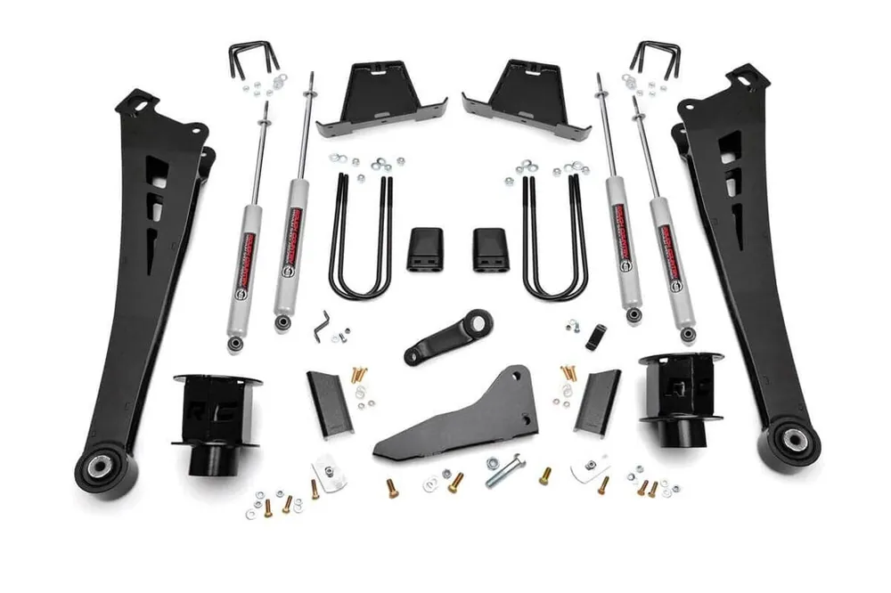 Rough Country’s new 5-inch Suspension kit features a set of ultra-durable Radius Arms, precision fit to bolt right into the factory mounts for an easier install and a more factory-like angle. These beefy, upgraded Radius Arms also feature a durable, Clevite Rubber Bushing for maximum vibration absorption.