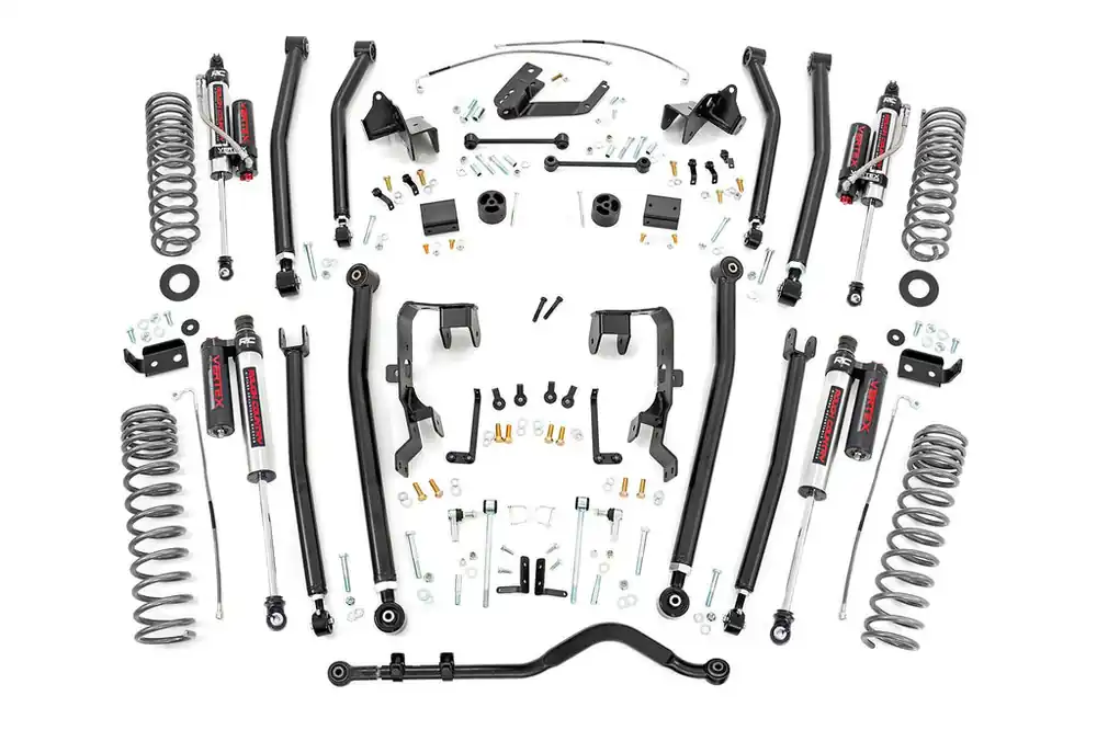 Rough Country’s 4in kit boasts an easier install process than most long arm kits, with no welding and no removal of the factory crossmember required for installation. The kit also includes extended stainless steel brake lines and coil correction plates making it that much faster and easier to install. Includes a Lifetime Replacement Guarantee!