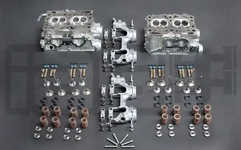 IAG’s Stage 5 Cylinder Head Package utilizes a CNC porting program for the S20 heads that was developed over the past five years and tested on the most successful high-horsepower Subaru’s. The ported head package starts with brand new S20 2002-05 WRX 2.0L OEM head castings directly from Subaru of America. The bare castings are visually inspected then fixtured into our in-house Centroid 5-axis CNC Machine, one of the most advanced precision engine machining equipment in the world. The Centroid CNC ports the intake and hard to reach exhaust “dog-leg” port runner. The benefit of CNC porting is not only an efficient way of machining the heads it also offers consistent port results that are hard to achieve by hand.