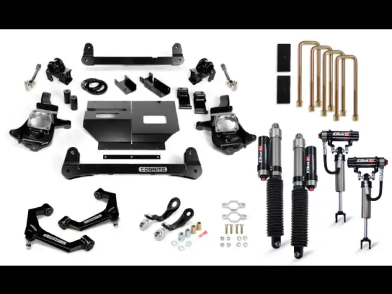 We have bundled everything you need in a lift kit for your Silverado/Sierra 2500/3500 2WD/4WD with high quality Cognito components. There is no guesswork. Cognito components are engineered, manufactured, and assembled in the USA.The Cognito Ball Joint SM Series Upper Control Arms add style, function, and performance to your vehicle by correcting the Ball Joint angle for lifted and leveled applications and improving the allowable droop travel for a better ride quality.The boxed sheet metal arms are welded, and powder coated semi-gloss black. Pre-installed maintenance free ball joints and pivot bushings are included.The Cognito Pitman and Idler Arm Support Kit: Pitman and Idler arms have been an inherent wear problem within the steering systems of Chevy and GMC trucks and SUVs for decades. The Cognito PISK (Pitman and Idler Arm Support Kit) replace the problem components that plague factory and aftermarket steering systems on several models and years of GM trucks and SUVs. These improvements are accomplished through application of Cognito’s innovative, patented design, by providing additional support to the vehicle’s pitman and idler arms, which eliminate the forward and rearward movement of the center-link.The Cognito 1-inch Block and U-Bolt Kit includes 1-inch tall powder coated semi-gloss black cast steel blocks and heavy-duty zinc plated U-boltsThe Elka 2.5 shocks feature Dual Speed Compression adjustment and provide better attenuation of vibration, leading to major noise reduction in the cabin (much less squeak and rattle), damping characteristics optimized for each truck and setup, providing a smoother ride. Increased comfort in both on road and off-road conditions, especially over washboard and square-edge impacts, more stable and more predictable handling, reduced front-end diving when cornering or braking reduced rear-end bucking and lifting, and increased damping and spring rate for better handling when towing or loading truck