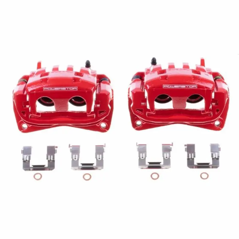 PowerStop Powder Coated Brake Calipers are made specifically with the enthusiast in mind. These calipers (sold as pairs) bolt directly in place of the original stock calipers and look great behind any set ofwheels. PowerStop Brake Calipers are engineered to provide the best performance and reliability, and are coated with a durable electrostatic high-temperature red powder coat. The easy-to-clean coating provides resistance to rust and corrosion thus extending the life of your calipers. PowerStop calipers are 100% pressure tested and inspected to verify piston operation to guarantee a reliable, high quality brake performance. Expertly assembled with everything needed for a brake upgrade using new seals, caliper slide pins/bolts, dust boots, bleeder screws, and stainless-steel pad attachment hardware. High temperature EPDM rubber dust boots and premium lubricants ensure a smooth caliper operation and durability in the harshest conditions. PowerStop Powder Coated Brake Calipers are finished in a high-temp powder coating and designed to enhance both the performance and custom look of your vehicle!