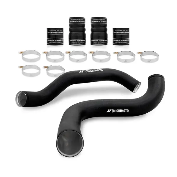 Give your Ford Super Duty the durability boost it deserves with the Mishimoto Intercooler Pipe and Boot Kit for the 1999-2003 Ford F-Series 7.3L Powerstroke. These workhorse turbodiesels produce mounds of boost pressure to churn out the serious torque that you need. This abuse takes its toll on the intercooling system, especially the piping. The Mishimoto pipe and boot kit replaces the stock system with a pair of tough, mandrel-bent aluminum pipes for both the intercooler’s hot and cold sides for maximum durability. This kit includes Mishimoto Silicone Boots with DuraCore technology. Mishimoto DuraCore technology is the synthetic material that comprises the innermost layer of all Mishimoto Silicone Diesel Boots. Compared to normal silicone, DuraCore provides superior resistance to heat, pressure, fuel, and oil. This effectively increases the life of our boots by preventing leaks and blowouts. The kit includes Mishimoto Constant-Tension T-bolt Clamps for accurate and consistent holding power to add even more reliability. For the best performance, make sure to pair this kit with our Mishimoto Ford 7.3l Powerstroke Performance Intercooler. The Mishimoto Intercooler Pipe and Boot kit for the Ford F-Series 7.3L Powerstroke is available in a polished and wrinkle-black powder-coated finish and includes the Mishimoto Lifetime Warranty for a worry-free installation.