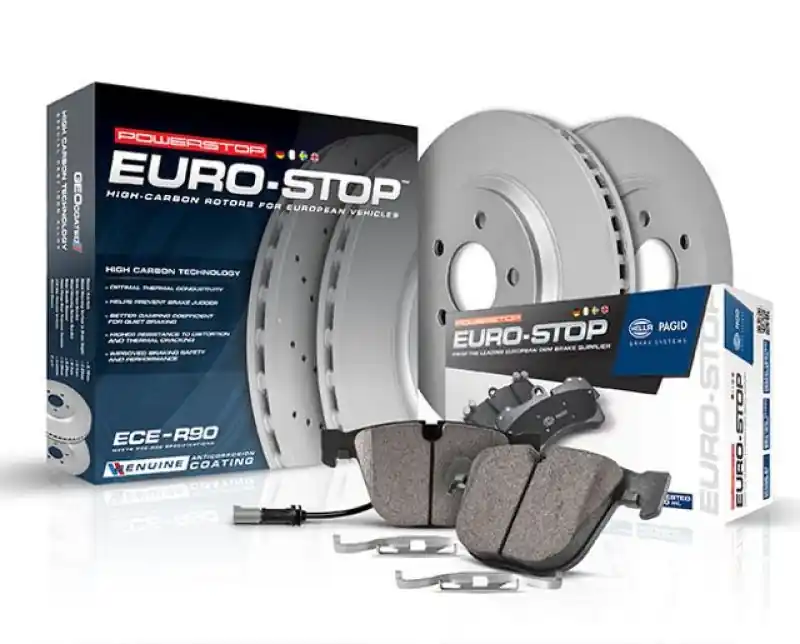 PowerStop is on a mission to deliver an easy way for any driver to upgrade their brakes – no matter where or how they use their vehicle. We are proud to offer our Euro-Stop Brake Kit, an affordable solution for owners of high-end European vehicles who prefer original equipment brakes. This brake pad and rotor kit is manufactured to original equipment specifications and comes with everything you need, including electronic wear sensors and stainless-steel hardware, for an easy, bolt-on installation. The pads meet the strict ECE-R90 standards required throughout the European Union ensuring OE performance and quality, and the rotors are treated with a thin layer of Genuine GEOMET 360 coating to protect against rust and corrosion without diminishing braking performance. If you are looking to retain the original level of performance for your European vehicle but tired of the big price, Euro-Stop is for you.