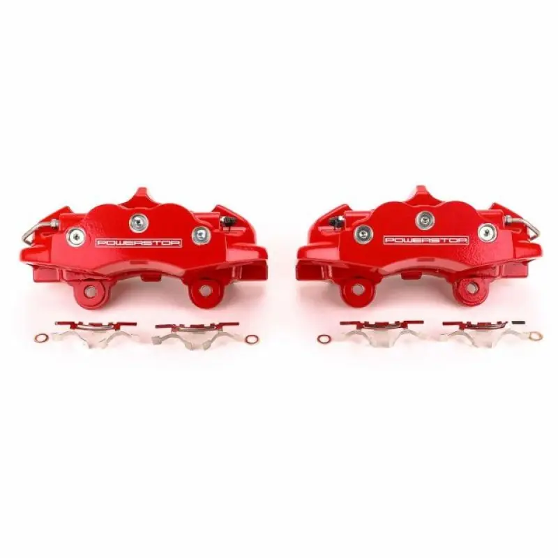 PowerStop Powder Coated Brake Calipers are made specifically with the enthusiast in mind. These calipers (sold as pairs) bolt directly in place of the original stock calipers and look great behind any set ofwheels. PowerStop Brake Calipers are engineered to provide the best performance and reliability, and are coated with a durable electrostatic high-temperature red powder coat. The easy-to-clean coating provides resistance to rust and corrosion thus extending the life of your calipers. PowerStop calipers are 100% pressure tested and inspected to verify piston operation to guarantee a reliable, high quality brake performance. Expertly assembled with everything needed for a brake upgrade using new seals, pad retainer pins and ciips, dust boots, bleeder screws, and stainless-steel pad attachment hardware. High temperature EPDM rubber dust boots and premium lubricants ensure a smooth caliper operation and durability in the harshest conditions. PowerStop Powder Coated Brake Calipers are finished in a high-temp powder coating and designed to enhance both the performance and custom look of your vehicle!