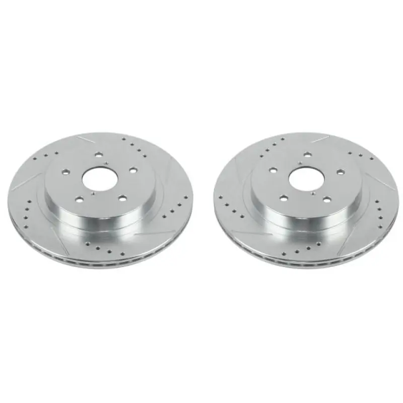 Power Stop drilled and slotted rotors provide a bolt-on upgrade for improved brake cooling and performance. Precision cross-drilled for maximum cooling and maximum performance during extreme conditions; rounded slots sweep away gasses, dust, and moisture to keep a clean friction contact patch on the rotor surface. Silver zinc dichromate plating resists rust and corrosion. With a direct OE fit, there are no special modifications needed.