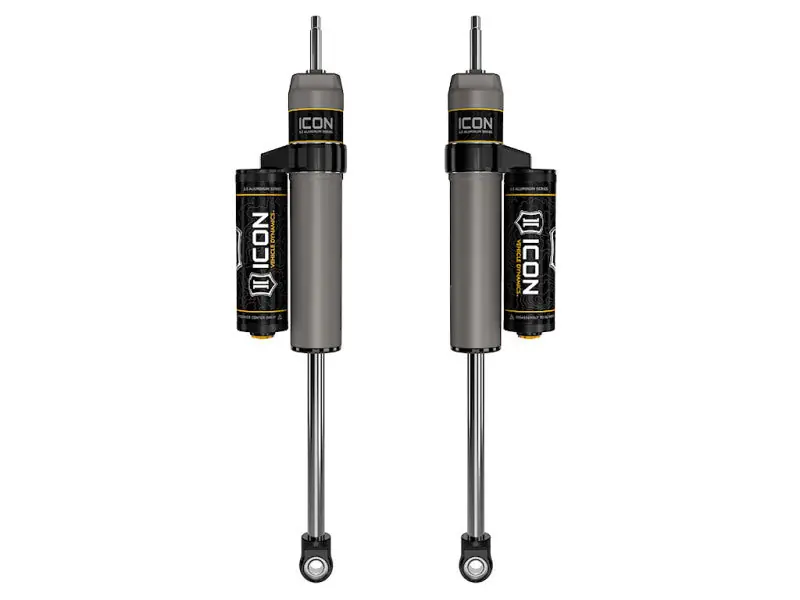ICON Vehicle Specific (V.S.) 2.5 Aluminum Series shocks are designed and built to give your vehicle outstanding performance off-road and a smooth ride on the street. These shocks are configured specifically for each application in both length and damping tune. Like all ICON’S Shock Absorbers, V.S. 2.5 Aluminum Series shocks are 100% rebuildable and 100% revalveable. For piggyback and specific remote reservoir applications, ICON’S unique use of a 6061 billet aluminum manifold a few inches below the top cap of the shock creates an internal Bump Zone that when used creates an additional 20% of damping force. This additional force helps prevent harsh bottom outs and controls the suspension when compressing at high velocity. If you are looking for a more user defined tune, consider looking into the Compression Damping Control Valve (CDCV) equipped shocks.