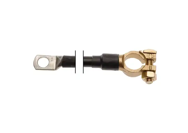 Universal brass battery terminalTin-plated copper lug to suit 10mm (3/8”) studAnnealed copper cable with PVC insulationDurable polyolefin heat shrink for lasting protectionMechanically crimped to ensure a solid permanent connectio