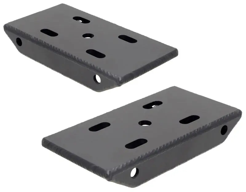 RockJocks Spring Plates are built to withstand the most rugged off road abuse! Plates feature a 5/16 in. thick steel top plate and a built-on, 1/4 in. skid plate to protect u-bolts. These heavy duty universal spring plates are designed to be used with 2 in. wide springs. Price listed is for a pair of plates.