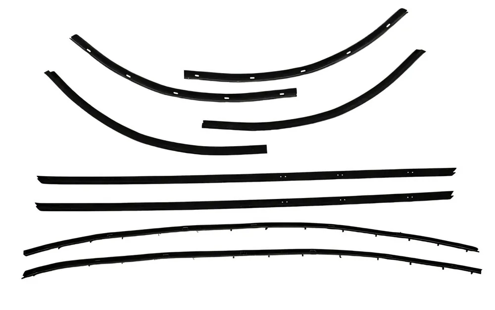 A window sweep kit is a set of replacement seals for classic car doors and windows. These sweeps help keep out water, dust, and wind while allowing the window glass to move smoothly. Replacing worn sweeps restores proper sealing, reduces interior noise, and protects door panels from moisture damage.