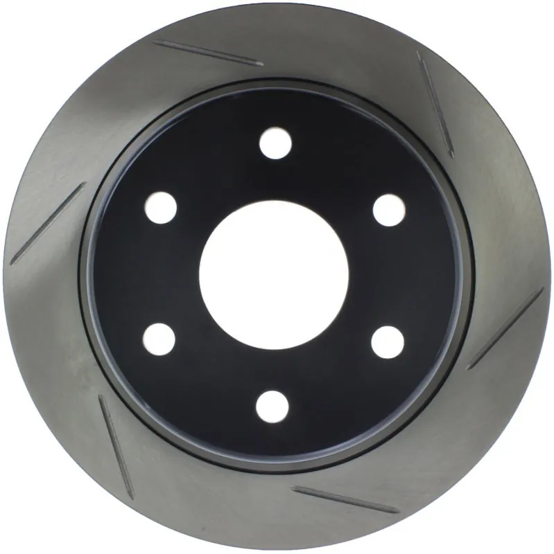 StopTech Slotted Sport Rotors are 1-piece direct replacement brake discs for factory brake systems and stock calipers that look great behind your wheels – and offer significantly improved braking performance. The unique slotting aids with heat and brake dust dispersal; prevents glazing of the pads; adds bite and improves wet and dry braking performance. Built to last; the black e-coating provides protection from corrosion and the high carbon metallurgy (in most applications) offers quieter operation; better crack resistance and increased performance.