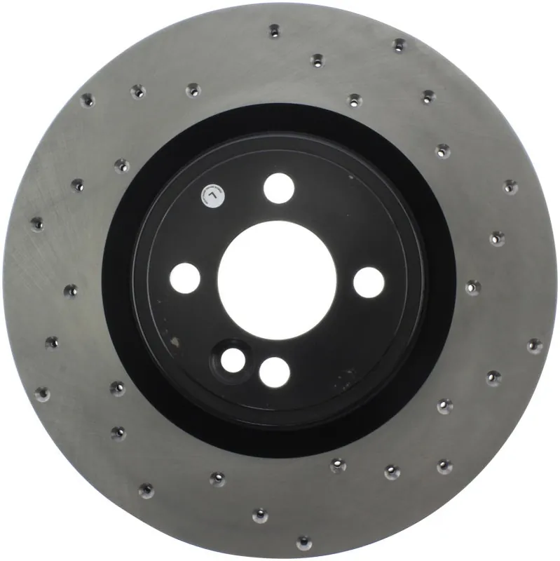StopTech Drilled Sport Rotors are 1-piece direct replacement brake discs for factory brake systems and stock calipers that look great behind your wheels – and offer significantly improved braking performance. The unique cross-drilling aids with heat and brake dust dispersal; prevents glazing of the pads; adds bite and improves wet and dry braking performance. Built to last; the black e-coating provides protection from corrosion and the high carbon metallurgy (in most applications) offers quieter operation; better crack resistance and increased performance.