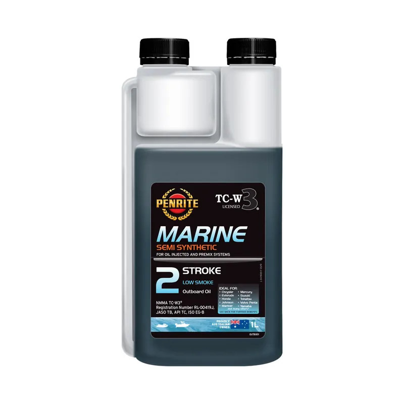 Marine Outboard Two Stroke Oil is a semi synthetic, NMMA (National Marine Manufacturers Association), fully licensed and registered TC-W3® 2 stroke engine oil. It is a low smoke two stroke oil manufactured from high quality base oils and an ashless additive system for engine cleanliness and minimisation of combustion chamber deposits. It is specially designed to facilitate easy mixing with fuel.APPROVALS AND LICENSESClick Here for NMMA TC-W3 License Registration Number RL-00419JAPPLICATIONMarine Outboard Two Stroke Oil is specifically designed for use in all water cooled two stroke outboard engines including oil injected and premix systems at mixing ratios as specified by manufacturer requirements. These include engines made by leading manufacturers such as:Chrysler Mariner Kawasaki TohatsuEvinrude Honda Johnson MercuryNissan Parsun Suzuki YamahaVolvo Penta and othersMarine Outboard Two Stroke Oil is NMMA Certified for service NMMA TC-W3® at the engine manufacturer’s recommended fuel/oil ratio. Please Note – Not intended for the high combustion temperatures that can occur in land-based air cooled 2-stroke engines or Sea-Doo Jet Skis (use Penrite MC-2ST Full Synthetic Two Stroke Oil). FUEL OIL RATIOPETROLOIL25:1 5 Litre 200ml50:1 5 Litre 100ml100:1 5 Litre 50mlMARINE OUTBOARD TWO STROKE OIL SEMI SYN REPLACES MARINE OUTBOARD TWO STROKE MINERAL