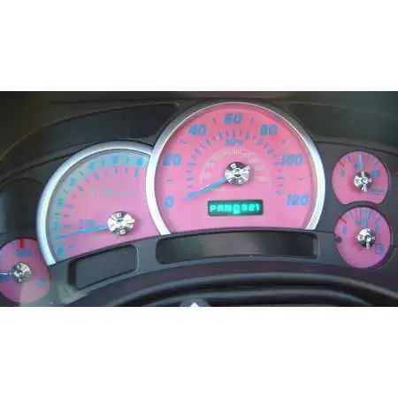 Pink Exotic Color Gauge Face: Shows 120 MPH, Gas, Transmission Temperature