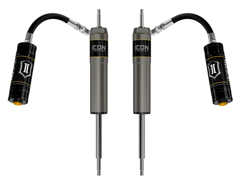ICON Vehicle Specific (V.S.) 2.5 Aluminum Series shocks are designed and built to give your vehicle outstanding performance off-road and a smooth ride on the street. These shocks are configured specifically for each application in both length and damping tune. Like all ICON’S Shock Absorbers, V.S. 2.5 Aluminum Series shocks are 100% rebuildable and 100% revalveable. The larger 2.5” shock body and increased piston area over stock components provides improved damping ability and outstanding ride characteristics across varying types of terrain. Remote reservoirs ensure optimum performance by increasing the duration of consistent damping regardless of situation, keeping the shocks at a cooler operating temperature during heavy use. If you are looking for a more user defined tune, consider looking into the Compression Damping Control Valve (CDCV) shocks.