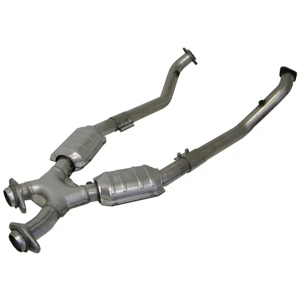 BBK High Flow performance X pipes are designed to maximize the horsepower and torque of your 1996-1998 Ford Mustang 4.6L GT. Every BBK Performance X pipe is designed as a direct replacement for the factory pipe and features larger diameter 16 gauge 2-1/2 in. CNC mandrel bent aluminized steel tubing with a unique BBK center X section for improved exhaust extraction, along with high flow catalytic converters to help increase exhaust flow and maximize performance to the rear wheels. These BBK full catted X pipes will install directly to the factory shorty exhaust headers or any aftermarket shorty exhaust and feature factory O2 sensor placement for simple direct installation. A BBK catted X pipe is the best way to really improve your Mustangs exhaust flow over the restrictive factory pipe to increase overall performance, plus it will sound great with an additional V8 muscle car growl. Please Note. This BBK product is not legal for use in some states including California: Please check your local emission laws and requirements.