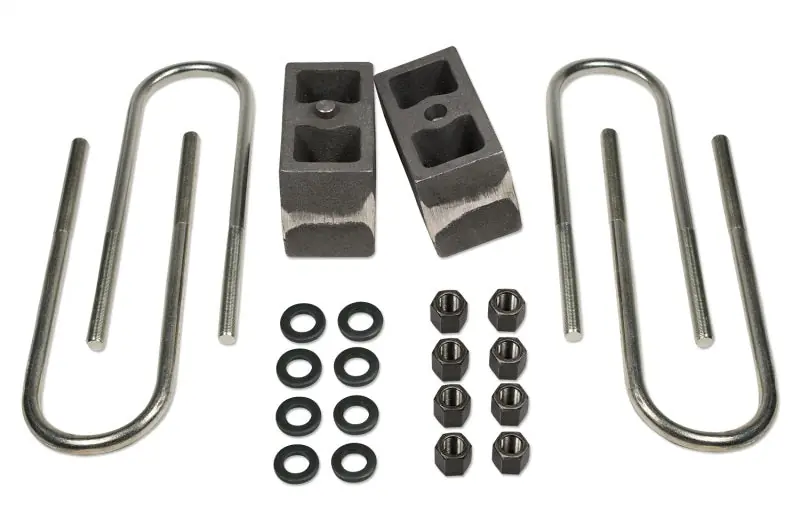 Tuff Country’s block and u-bolts kits are an economical solution to raising the rear end of many trucks and SUVs. Lift blocks are inserted between the factory axle and leaf spring to lift the rear end. Each kit includes lift blocks and extended zinc plated u-bolts, custom fit for the application.