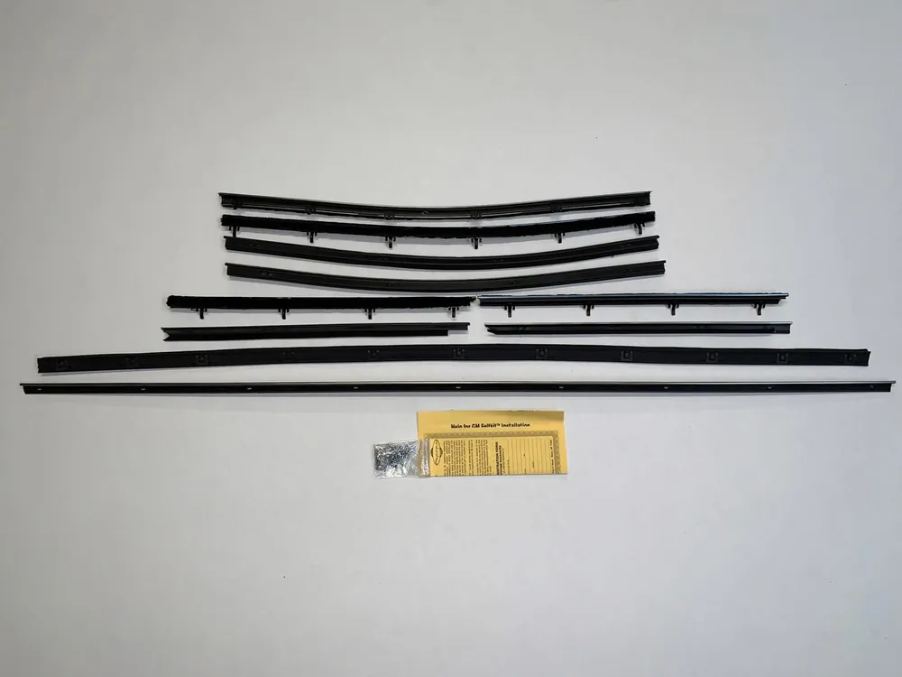 A window sweep kit is a set of replacement seals for classic car doors and windows. These sweeps help keep out water, dust, and wind while allowing the window glass to move smoothly. Replacing worn sweeps restores proper sealing, reduces interior noise, and protects door panels from moisture damage.